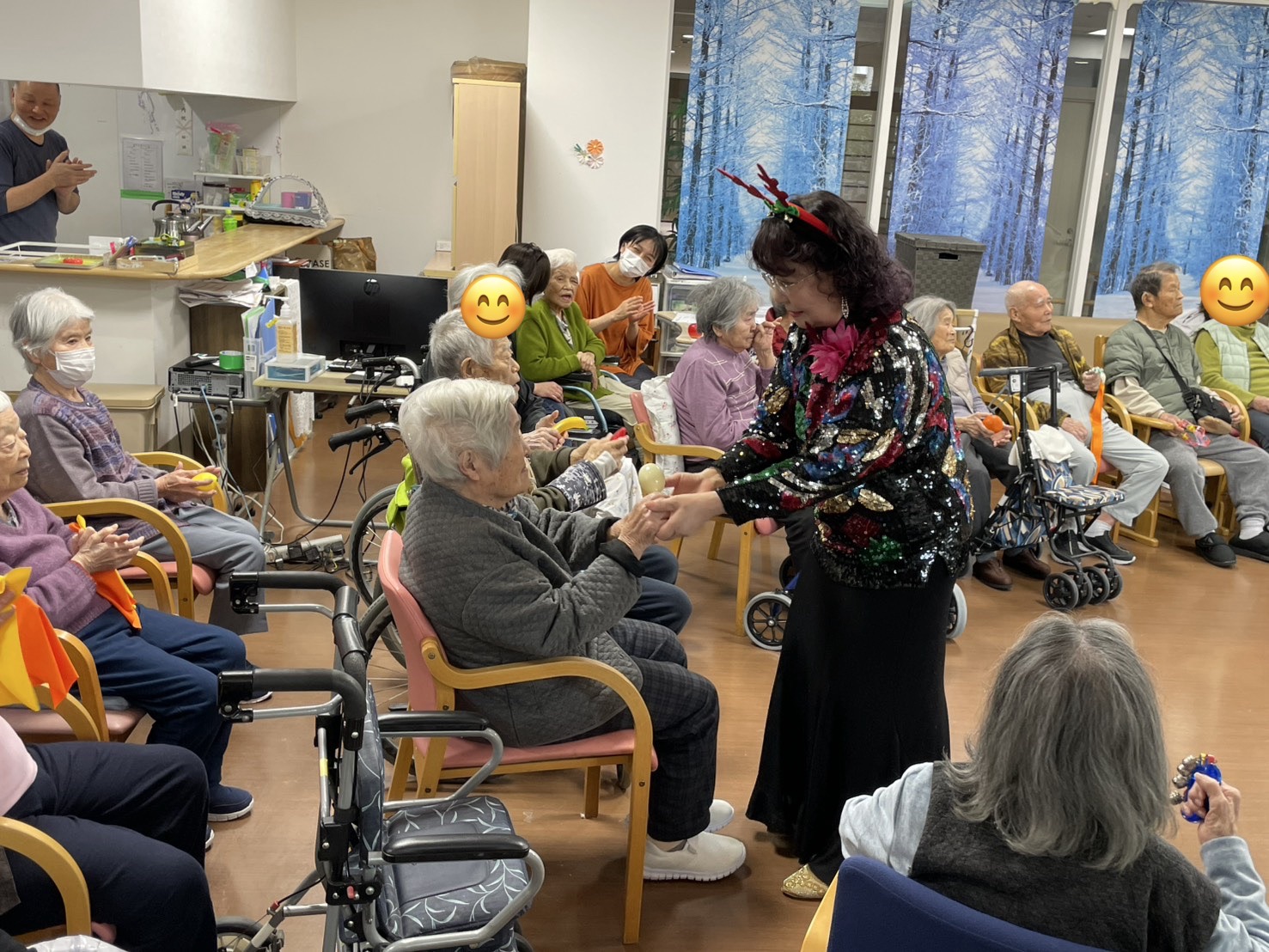 入所者のI様もツリーの飾りつけを一緒に手伝って下さいました🎄